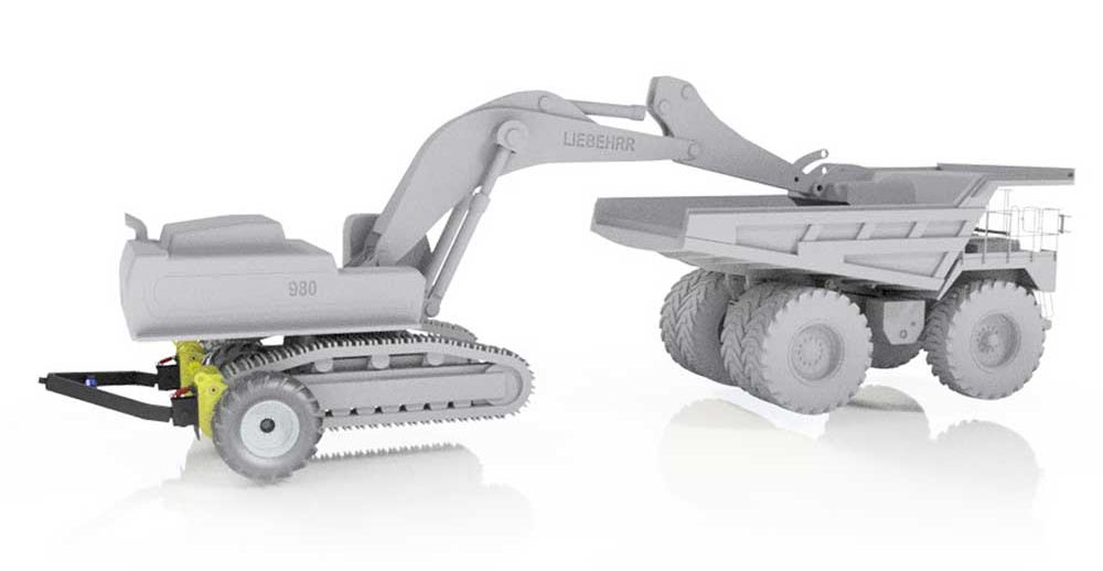 The articulated vehicle (Kinito EMS + Dump truck + Excavator) could easily allow for the movement through gradients only confined to the towing vehicle’s ability. However, it is with the declines that our system uniquely supports the towing vehicle with our fail-safe, remote control braking system.